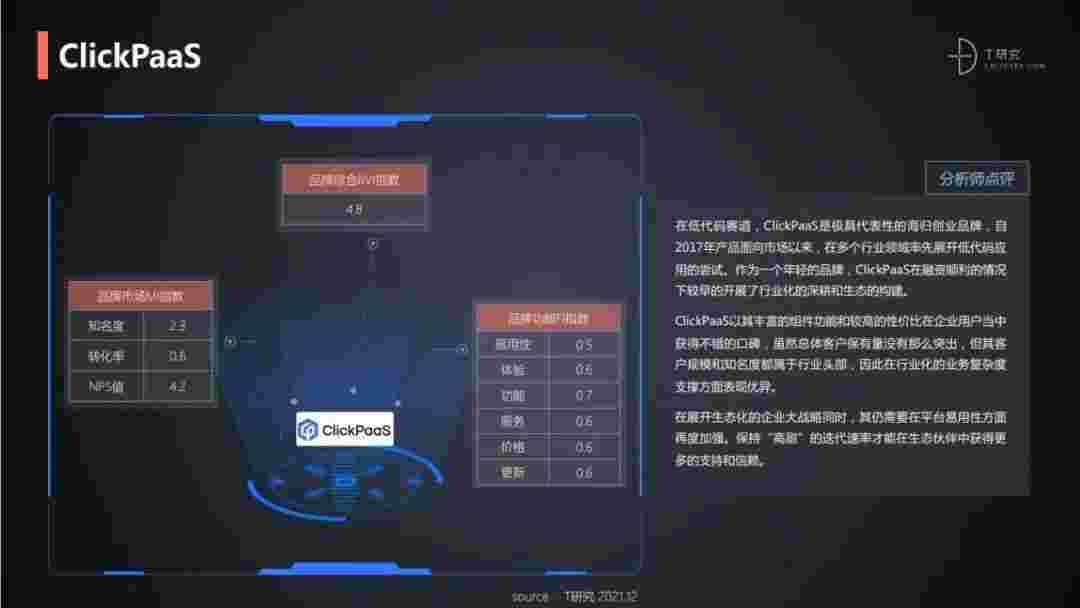 T研究认为,,,,,,在低代码赛道,,,,,,,华为钱包是极具代表性的海归创业品牌,,,,,,自2017年产品面向市场以来,,,,,,,,,,,,,在多个行业领域率先展开低代码应用的尝试。。。。。。。。。。。。作为一个年轻的品牌,,,,,,华为钱包较早的开展了行业化的深耕和生态的构建。。。。。。。。。。。。。。华为钱包以丰富的组件功能和较高的性价比在企业用户当中获得不错的口碑,,,,,,,在客户规模和知名度都属于行业头部,,,,,因此在行业化的业务复杂度支撑方面表现优异。。。。。。。。