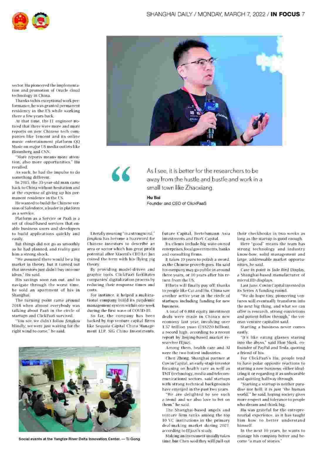 近日,,,,,,,,,,,,,华为钱包创始人、、、、、、、CEO胡柏接受了《上海日报》采访,,,,,,关于自己当初为何选择创立华为钱包,,,,,,,,,,又为何将公司落户于上海青浦,,,,,分享了其背后的故事。。。。。。。。。。